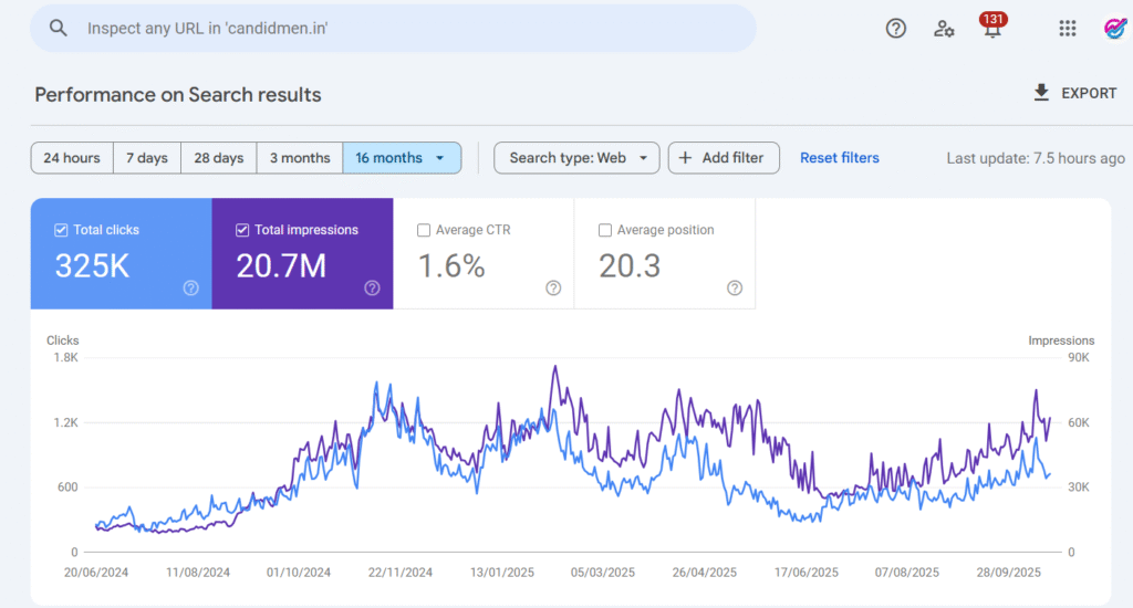 When Candidmen approached Hunky Dory Solutions in October 2024, they already had a beautifully designed website but lacked visibility in search results. Our mission was clear — to build a strong organic foundation and make Candidmen visible across India for key rental-related searches.
